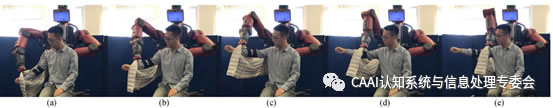 圖3展示了完整的穿衣過程。當用戶在穿衣過程抬起胳膊時,機器人也相應改變軌跡來減少受力情況,并實時運行至新的肘關(guān)節(jié)和肩關(guān)節(jié)位置。