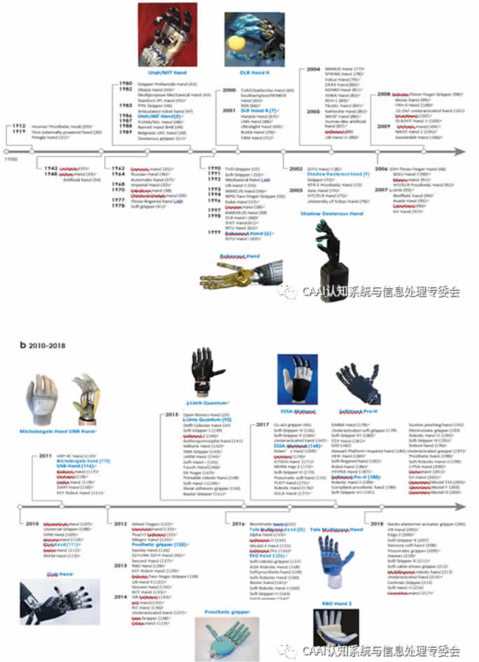 研究人員試圖通過復(fù)雜的設(shè)計(jì)來仿造人類雙手的外觀和靈活性,并集成了許多驅(qū)動(dòng)器和傳感器,例如猶他/MITH、RobonautHand、DLR(Deutsches Zentrum für Luft- undRaumfahrt)Hand II、Gifu Hand II、Shadow Dexterous Hand及清華大學(xué)孫富春團(tuán)隊(duì)開發(fā)的系列靈巧手等。雖然目前有很多實(shí)驗(yàn)樣機(jī),但在工業(yè)機(jī)器人、服務(wù)機(jī)器人甚至假肢方面,實(shí)際應(yīng)用數(shù)量仍然有限。為了增加推廣,近年來已經(jīng)提出了一些新的方法和解決方案,以開發(fā)有效和可靠的靈巧手。事實(shí)上,雖然實(shí)現(xiàn)了出色的結(jié)構(gòu)和功能擬人化——即不僅在外觀上,而且在動(dòng)作和功能上與人類的手相似(可能會(huì)過于復(fù)雜),但近年有趨勢(shì)旨在實(shí)現(xiàn)穩(wěn)健的、易于編程的、經(jīng)濟(jì)實(shí)用的靈巧手,能夠執(zhí)行人手操作功能的子集。