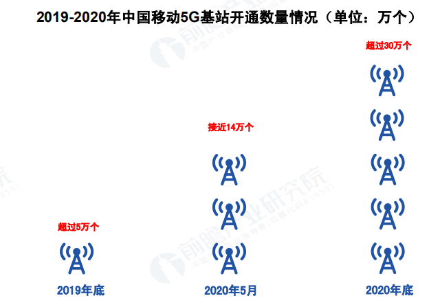 在2020年6月6日,工信部新聞宣傳中心舉行的“5G發(fā)牌一周年”線上峰會上,中國移動表示目前已開通近14萬個5G基站,并將加快網(wǎng)絡建設,確保年內(nèi)累計建成30萬個5G基站,實現(xiàn)在全國所有地級以上城市提供5G商用服務,夯實經(jīng)濟社會數(shù)字化轉(zhuǎn)型的網(wǎng)絡基礎。