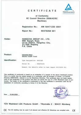 近日,杭叉集團(tuán)股份有限公司(以下簡(jiǎn)稱杭叉集團(tuán))的無(wú)人駕駛工業(yè)車輛(AGV)產(chǎn)品獲得了符合2006/42/EC歐盟機(jī)械指令和ISO 3691-4國(guó)際標(biāo)準(zhǔn)的無(wú)人駕駛工業(yè)車輛CE證書,這是自ISO3691-4標(biāo)準(zhǔn)實(shí)施以來(lái)萊茵頒發(fā)的國(guó)內(nèi)首張無(wú)人駕駛工業(yè)車輛CE證書,標(biāo)志著杭叉集團(tuán)AGV車輛的制造和設(shè)計(jì)達(dá)到國(guó)際先進(jìn)水平。