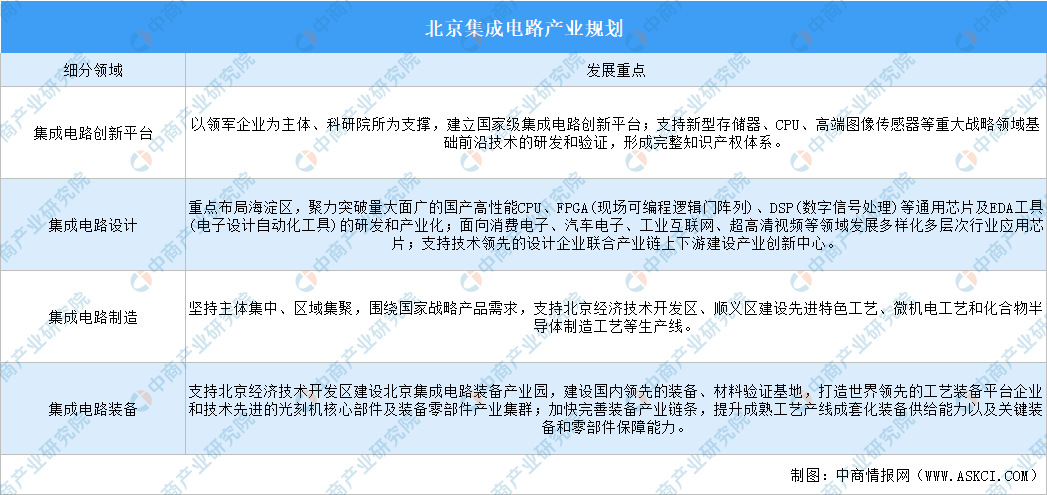 集成電路:以自主突破、協(xié)同發(fā)展為重點,構(gòu)建集設(shè)計、制造、裝備和材料于一體的集成電路產(chǎn)業(yè)創(chuàng)新G地,打造具有國際競爭力的產(chǎn)業(yè)集群。重點布局北京經(jīng)濟技術(shù)開發(fā)區(qū)、海淀區(qū)、順義區(qū),力爭到2025年集成電路產(chǎn)業(yè)實現(xiàn)營業(yè)收入3000億元。