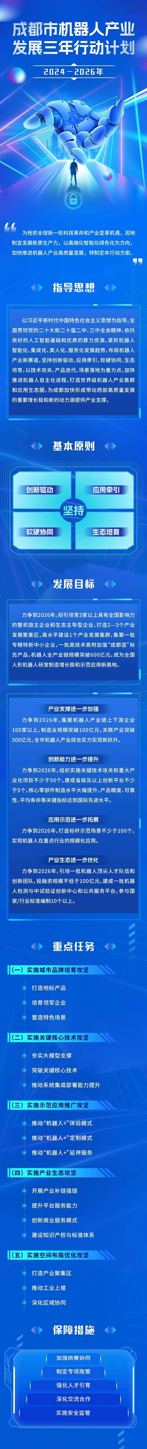 據(jù)介紹,近年來,成都深入推進(jìn)工業(yè)立市、制造強(qiáng)市“一號工程”,將機(jī)器人產(chǎn)業(yè)作為未來產(chǎn)業(yè)新賽道并將其納入30條重點(diǎn)產(chǎn)業(yè)鏈之一,致力于打造“無處不在、無時不用”的產(chǎn)業(yè)生態(tài),以場景為牽引,全力推動產(chǎn)業(yè)G質(zhì)量發(fā)展。