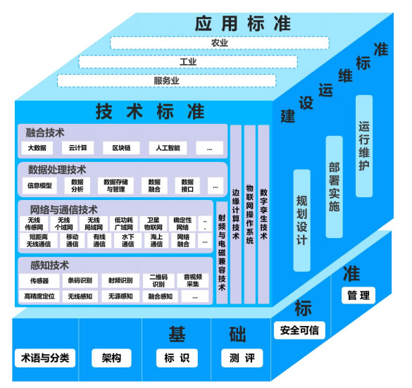 物聯(lián)網(wǎng)標準體系包括基礎(chǔ)標準、技術(shù)標準、建設(shè)運維標準和應(yīng)用標準等4個部分,見圖1。基礎(chǔ)標準是物聯(lián)網(wǎng)的總體性、框架性標準,為其他各類標準提供基礎(chǔ)支撐;技術(shù)標準是物聯(lián)網(wǎng)的關(guān)鍵共性技術(shù)與融合技術(shù)標準,為實現(xiàn)物聯(lián)網(wǎng)應(yīng)用提供技術(shù)支撐;建設(shè)運維標準是物聯(lián)網(wǎng)系統(tǒng)規(guī)劃、建設(shè)、運行、維護的標準,以指導(dǎo)各行業(yè)推進物聯(lián)網(wǎng)系統(tǒng)建設(shè)和規(guī);渴饝(yīng)用;應(yīng)用標準是面向行業(yè)具體應(yīng)用需求,對其它部分標準的細化,支撐各行業(yè)發(fā)展。