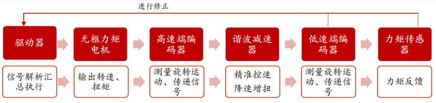 旋轉(zhuǎn)執(zhí)行器:驅(qū)動關(guān)節(jié)完成旋轉(zhuǎn)動作,減速器為核心部件