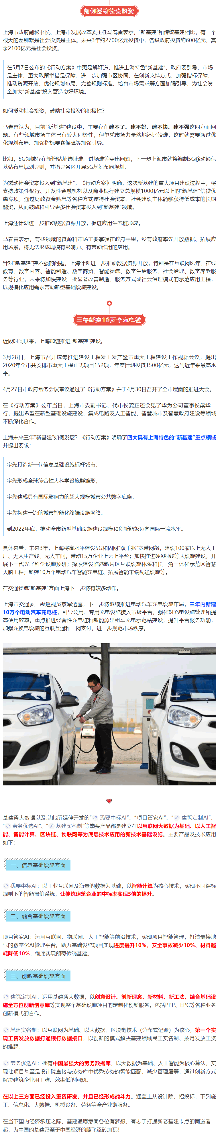 5月7日,上海市公開《上海市推進新型基礎設施建設行動方案(2020-2022年)》(下簡稱《行動方案》),要求三年內(nèi)推動上海新型基礎設施建設規(guī)模和創(chuàng)新能級邁向國際出色水平。其中,強調(diào)“社會資金加大‘新基建’投入”成為上海版“新基建”方案的重點之一。