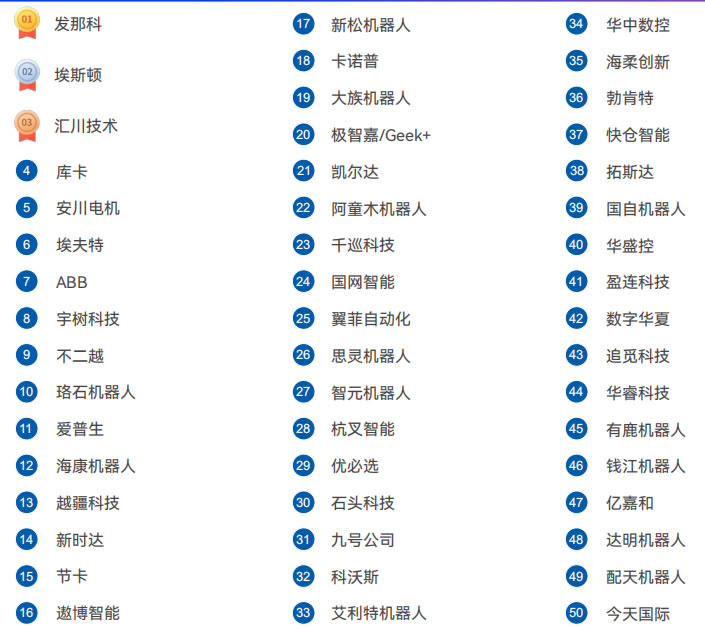 匯川技術(shù),珞石機器人,越疆科技,節(jié)卡,埃斯頓,遨博智能,埃夫特,?禉C器人,新時達,大族機器人,阿童木機器人,新松機器人,極智嘉/Geek+