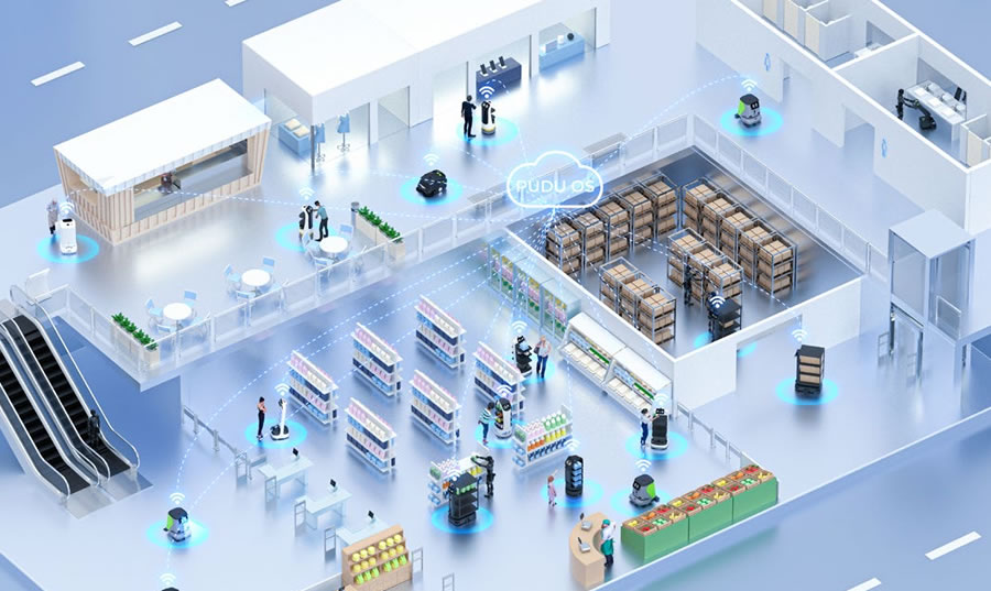 2. 智能化運營:營銷服務(wù)機(jī)器人及工業(yè)J配送 機(jī)器人等多種類型機(jī)器人相互協(xié)作,并結(jié)合 RFID與視覺識別等技術(shù) ,實現(xiàn)貨架庫存實時監(jiān)控,為零售場景提供自助支付結(jié)賬、智能補貨等多項服務(wù),實現(xiàn)零售關(guān)鍵環(huán)節(jié)的智能化。