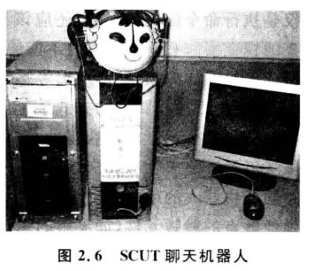近年來,SCUT “智能計算機”科研團隊也對 聊天機器人展開了研究,如圖2.6所示。他們開 發(fā)的SCUT 聊天機器人包括攝像頭及驅動模塊、 語音拾取模塊、語音識別模塊、知識查詢模塊、語 音生成模塊;攝像頭捕獲人臉圖像,語音信號經 由語音拾取模塊和語音識別模塊后識別出語義,聊天機器人根據用戶的語音來了解用戶的需求,