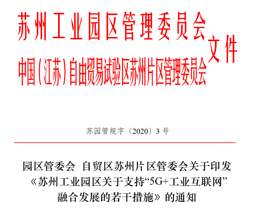 《蘇州工業(yè)園區(qū)關(guān)于支持“5G+工業(yè)互聯(lián)網(wǎng)”融合發(fā)展的若干措施》