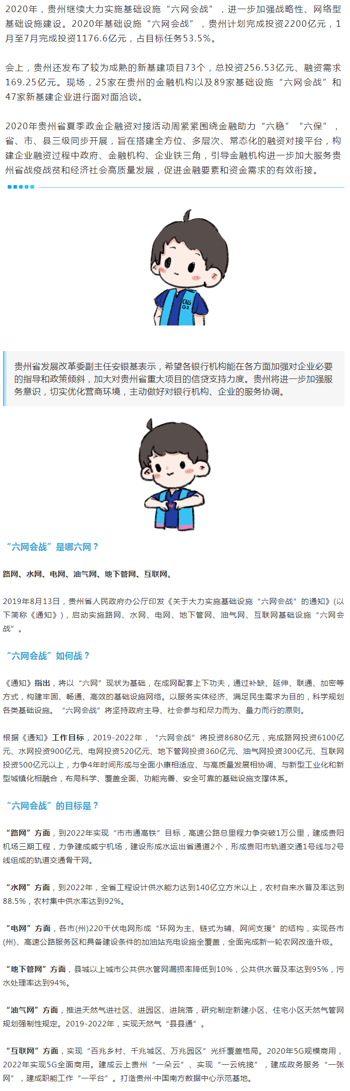 8月6日,2020年貴州省夏季政金企融資對接活動周基礎(chǔ)設(shè)施“六網(wǎng)會戰(zhàn)”和新基建項(xiàng)目融資洽談會在貴陽舉行。會上,省發(fā)展改革委向金融機(jī)構(gòu)發(fā)布了“六網(wǎng)會戰(zhàn)”和新基建項(xiàng)目261個,總投資5477.98億元、融資需求3290.53億元。其中,新基建項(xiàng)目73個,總投資256.53億元、融資需求169.25億元。25家在黔金融機(jī)構(gòu)與89家基礎(chǔ)設(shè)施“六網(wǎng)會戰(zhàn)”和47家新基建項(xiàng)目建設(shè)單位進(jìn)行了面對面洽談。