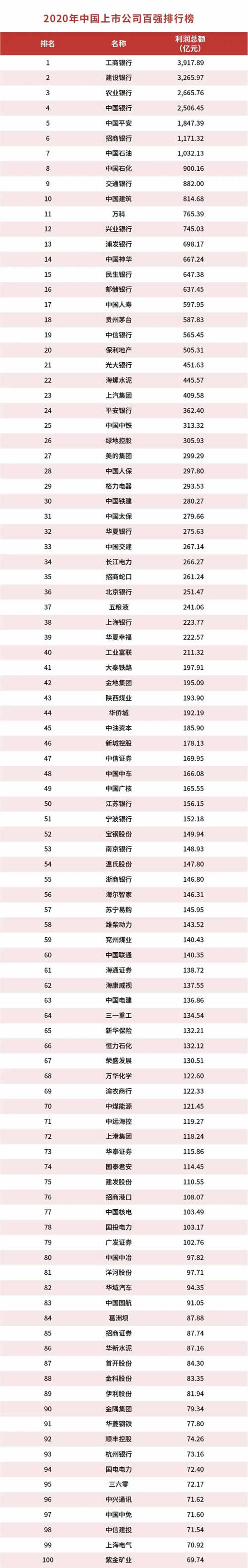 8月24日,“2020年中國上市公司百強(qiáng)排行榜”在上海發(fā)布,共500家企業(yè)上榜,低上榜線為2019年度利潤總額12.13億元。這是華頓經(jīng)濟(jì)研究院自2001年以來連續(xù)第20年編制發(fā)布“中國上市公司百強(qiáng)排行榜”。