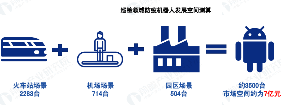假設三等站配備1臺巡檢機器人、二等站配備2臺、一等站配備3臺、特等站配備4臺、民航機場配備3臺、每個園區(qū)配備3臺,巡檢L域防疫機器人的需求量約為3500臺。按照每臺機器人20萬元的價格計算,巡檢L域防疫機器人的市場空間約為7億元。