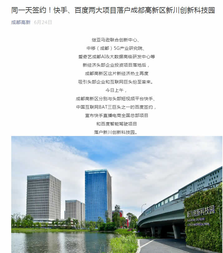 新川創(chuàng)新科技園于2012年正式啟動建設(shè),是新加坡與四川省攜手打造的國際合作共建園區(qū),由中新雙方合資組建中新公司進行整體規(guī)劃、開發(fā)。園區(qū)圍繞人工智能、新醫(yī)學、5G通信等產(chǎn)業(yè),重點布局國際知名企業(yè)的研發(fā)中心和區(qū)域總部。