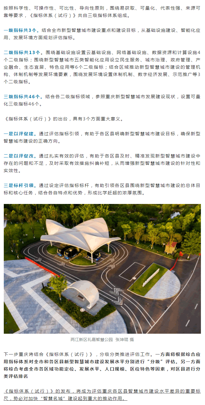近日,重慶市新型智慧城市建設(shè)L導(dǎo)小組辦公室發(fā)布《重慶市新型智慧城市評(píng)估指標(biāo)體系(試行)》(以下簡(jiǎn)稱《指標(biāo)體系(試行)》)。