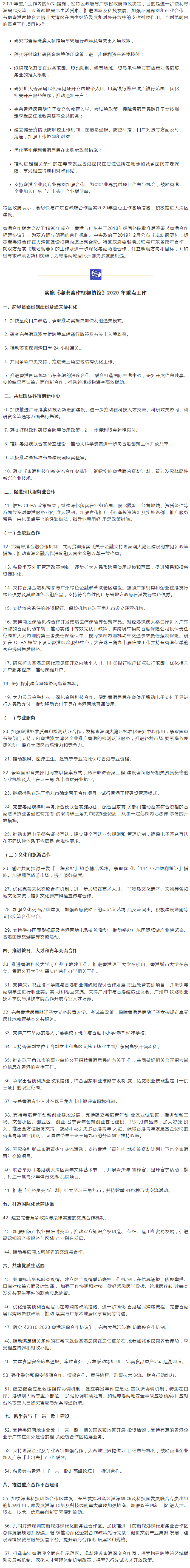 「2020年重點(diǎn)工作繼續(xù)以落實(shí)《粵港澳大灣區(qū)發(fā)展規(guī)劃綱要》(《規(guī)劃綱要》)及進(jìn)一步深化粵港兩地合作為方向和目標(biāo),內(nèi)容多元并涵蓋八大范疇,包括: