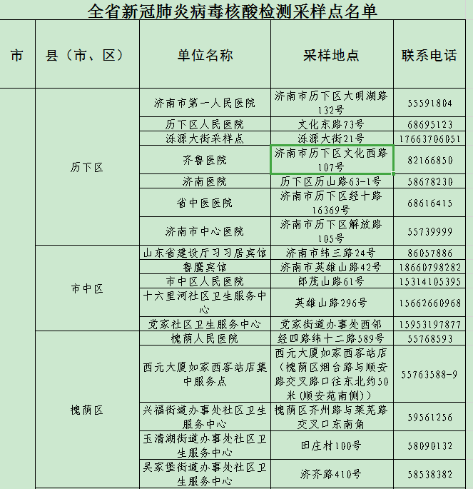 附件:山東核酸檢測(cè)采樣點(diǎn)全名單公布