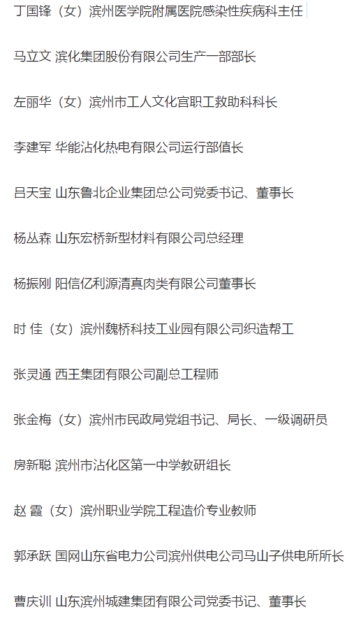 2021年濱州市五一勞動(dòng)獎(jiǎng)?wù)芦@得者名單