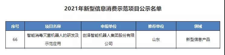 近日,國家工信部正式發(fā)布“2021年新型信息消費示范項目公示名單”。創(chuàng)澤集團的“智能消毒滅菌機器人的研發(fā)及示范應(yīng)用”項目,成功入選2021年新型信息消費示范項目。