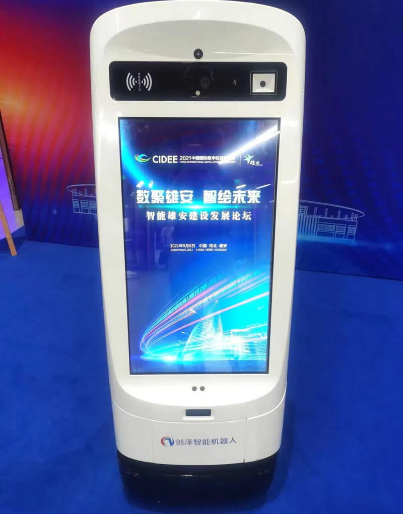 9月6日,由2021中國國際數(shù)字經(jīng)濟博覽會組委會、雄安新區(qū)管理委員會主辦的智能雄安建設發(fā)展論壇在雄安市民服務中心開幕。創(chuàng)澤集團受邀攜智能消毒殺菌機器人、智能大屏機器人等系列新產(chǎn)品亮相智能雄安建設發(fā)展論壇,讓現(xiàn)場觀眾近距離感受科技為生活帶來的智能服務體驗。