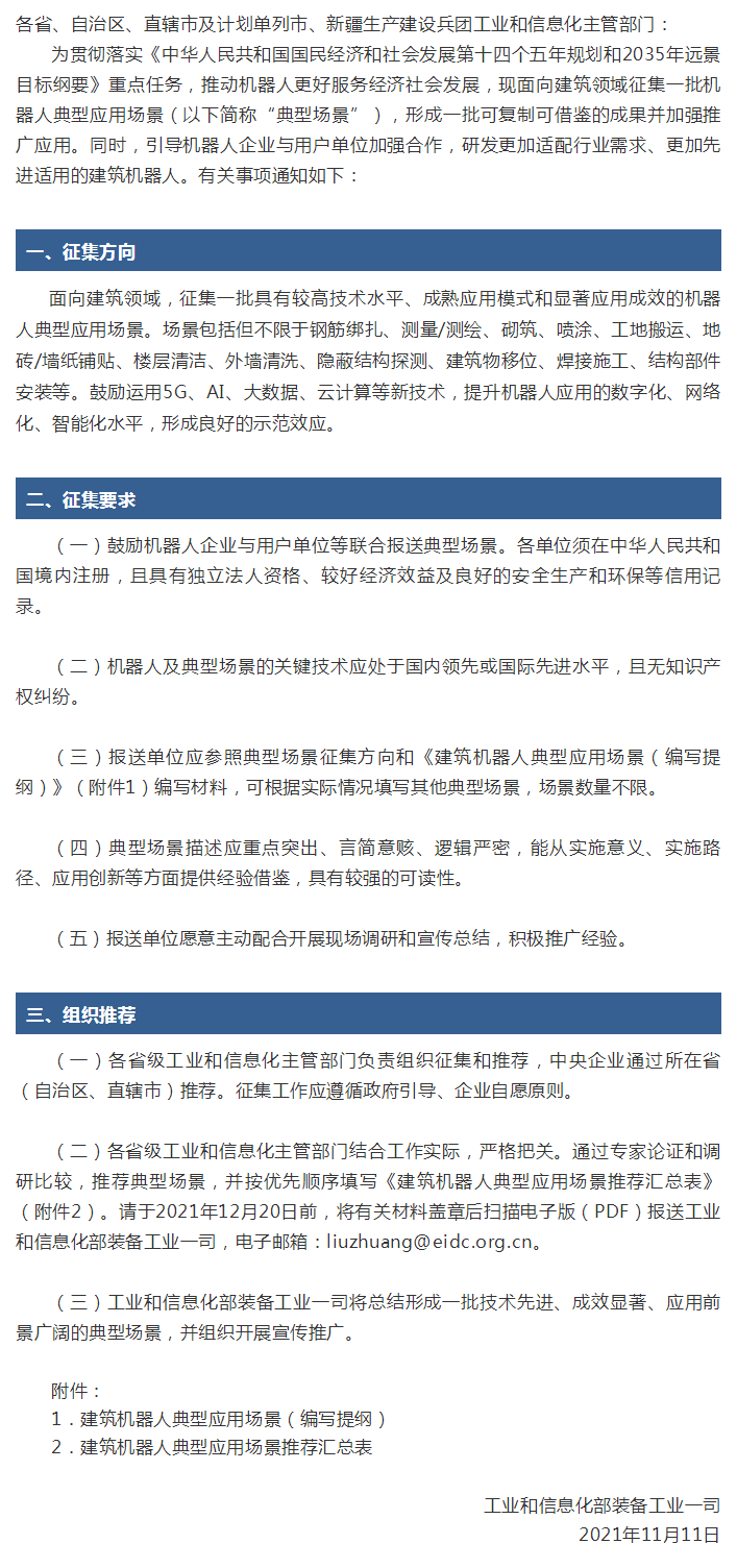 工通裝函〔2021〕372號,面向農業(yè)L域,征集一批具有較G技術水平,成熟應用模式和顯著應用成效的機器人典型應用場景,提升機器人應用的數(shù)字化