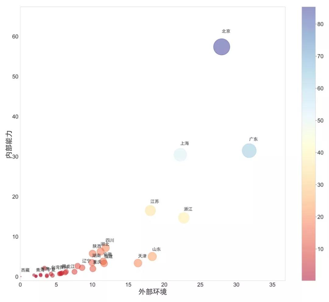 指數(shù)體系搭建方面,從系統(tǒng)性、權(quán)威性、可獲取性、可比性、發(fā)展性五大原則出發(fā),按照MECE要求,來構(gòu)建指標(biāo)體系。從內(nèi)部能力和外部環(huán)境兩大維度,由2個一級指標(biāo)、6個二級指標(biāo)、16個三級指標(biāo)構(gòu)成,并與多家權(quán)威數(shù)據(jù)機(jī)構(gòu)合作,保障數(shù)據(jù)可信度和權(quán)威性。