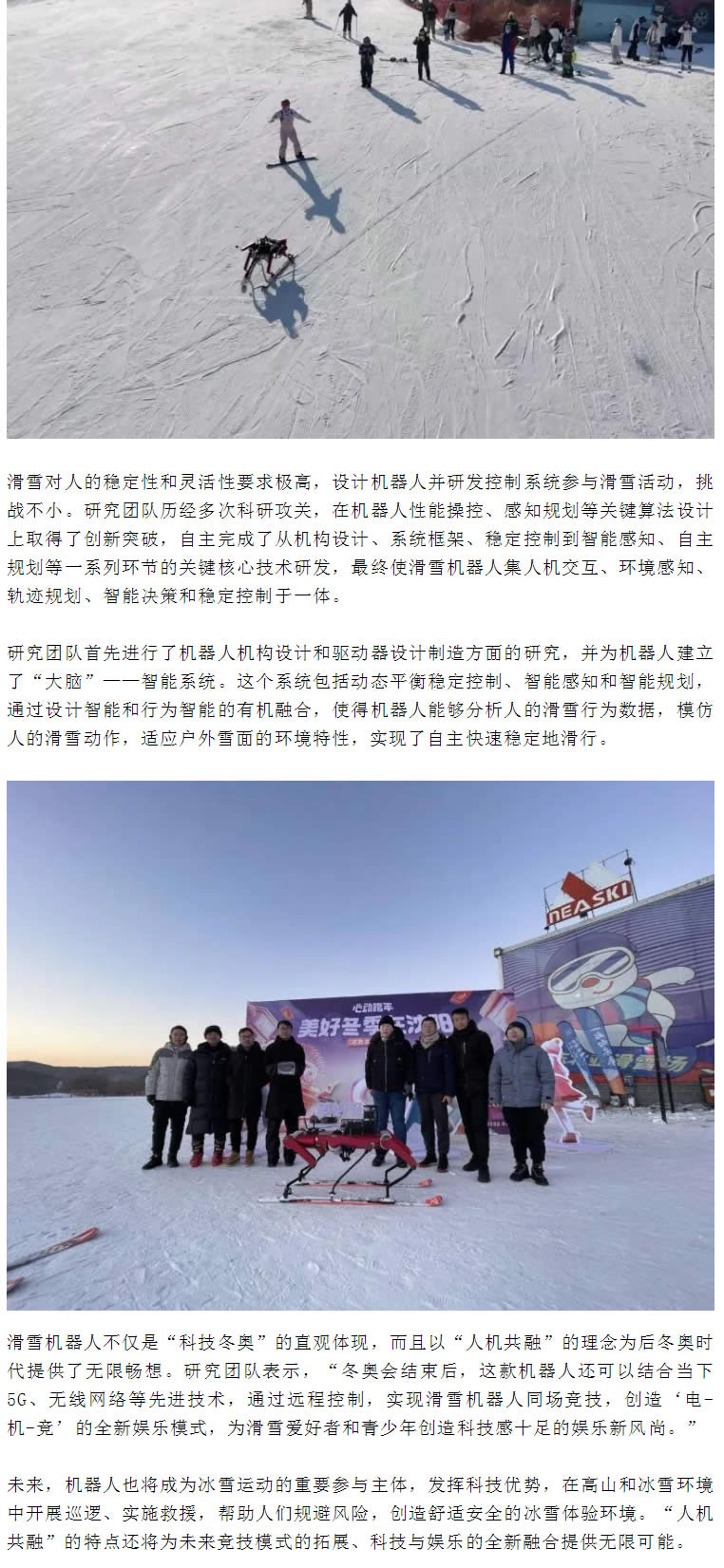 這款滑雪機器人是在“科技冬奧”的號召下,由上海交通大學(xué)G峰教授L銜,上海交通大學(xué)機械與動力工程學(xué)院和電子信息與電氣工程學(xué)院組成的足式機器人研究團隊研制,獲得了科技部國家重點研發(fā)計劃“科技冬奧”重點專項支持。