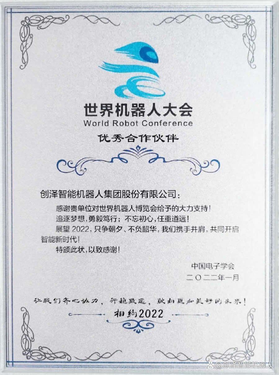 智能科技 創(chuàng)新不止!創(chuàng)澤集團榮獲2021年世界機器人大會“優(yōu)秀合作伙伴”稱號 |