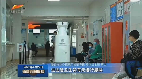 哈密市中心醫(yī)院門診部導(dǎo)醫(yī)熱依漢古麗·薩力說:“現(xiàn)在有了智能消毒機器人,設(shè)定好程序后,可以無死角的自動進行消殺,對我們和患者帶來了更方便的就醫(yī)環(huán)境!