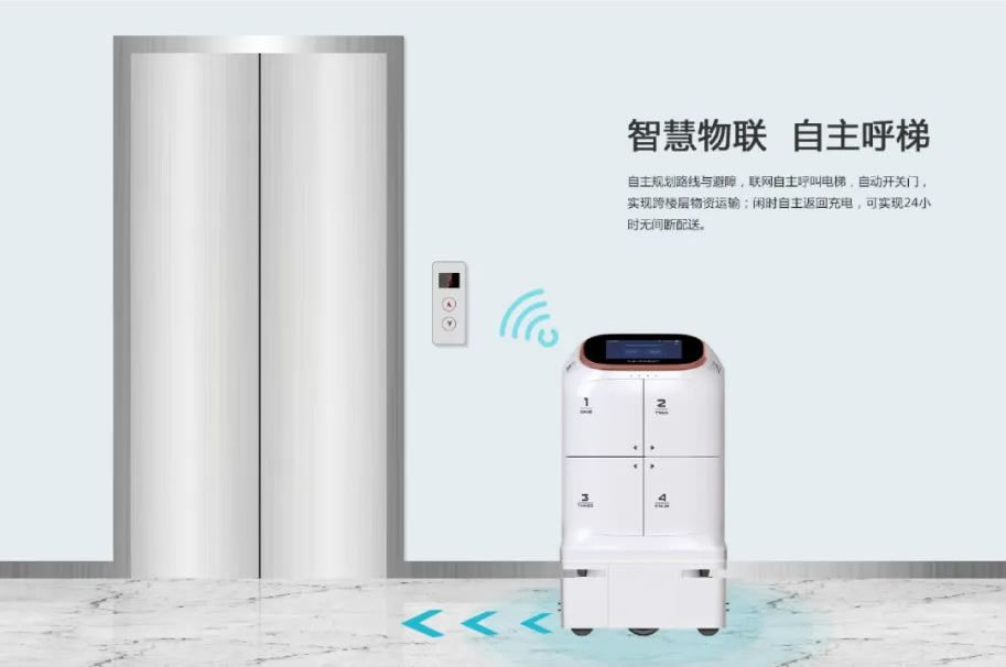 配送服務(wù)是機(jī)器人核心的功能,創(chuàng)澤智能配送機(jī)器人針對(duì)配送全流程進(jìn)行體驗(yàn)優(yōu)化,真正實(shí)現(xiàn)了全程無(wú)接觸配送。配備艙體有超大的儲(chǔ)物空間,聯(lián)網(wǎng)自主呼叫電梯,實(shí)現(xiàn)跨樓層物資運(yùn)輸;在G峰時(shí)段支持多機(jī)協(xié)作,放取貨品后自動(dòng)關(guān)閉艙門(mén),到達(dá)指定房間后,通過(guò)住房間內(nèi)的門(mén)鈴、電話(huà)、小程序等方式通知客人取貨,在配送途中遇到客人,會(huì)貼心的送去問(wèn)候。