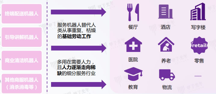 服務(wù)場(chǎng)景當(dāng)中,疫情下人與人的接觸成為服務(wù)場(chǎng)景的限制因素,催生了餐廳、酒店、醫(yī)院、寫字樓等場(chǎng)所機(jī)器人“無接觸”配送的應(yīng)用需求;