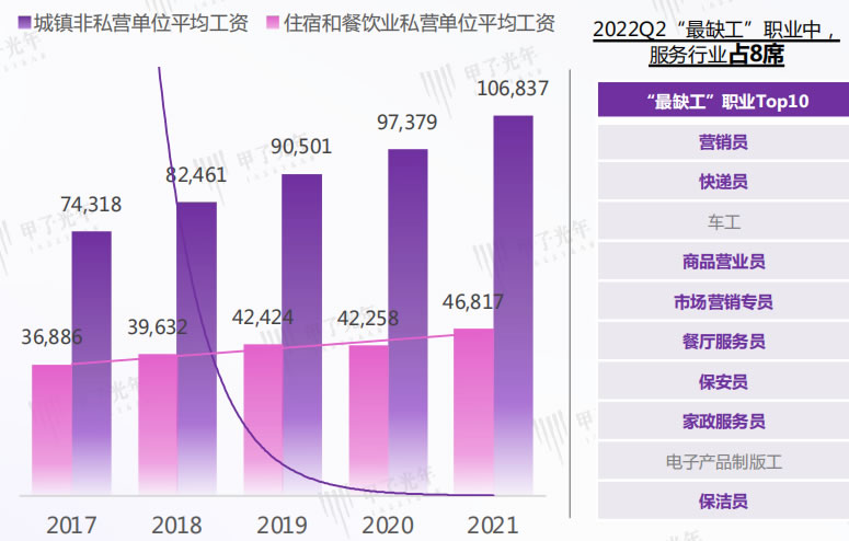 新G疫情大流行,造成勞動(dòng)力整體流動(dòng)性下降,勞動(dòng)人口與崗位錯(cuò)配,同時(shí)受限于整體工資水平低下,服務(wù)業(yè)勞動(dòng)力短缺問題愈發(fā)嚴(yán)重;