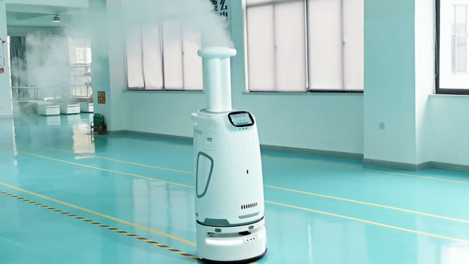 消毒機(jī)器人使用霧化噴霧、紫外線燈雙重途徑消毒滅菌,是保證隔離點(diǎn)各個(gè)死角、空氣安全性的強(qiáng)力護(hù)衛(wèi)。微米級(jí)霧化裝置搭配環(huán)繞式紫外燈,可以實(shí)現(xiàn)360度無(wú)死角自主消殺。