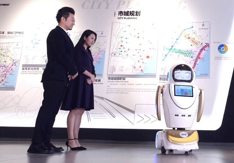 智能迎賓導(dǎo)覽機(jī)器人人裝備先進(jìn)的計算機(jī)語音處理系統(tǒng),其自身配備了自然語音庫和行業(yè)專業(yè)語音庫,可適性強(qiáng),適用于各年齡段游客,并且能夠提供準(zhǔn)確回復(fù)游客問題,具備學(xué)習(xí)功能,對游客提出的問題,通過數(shù)據(jù)庫進(jìn)行分析解答。同時機(jī)體內(nèi)還含有探測雷達(dá),機(jī)器人可根據(jù)探測到的數(shù)據(jù),引導(dǎo)通過電腦內(nèi)部錄入的地圖規(guī)劃路線,實(shí)現(xiàn)對游客零失誤引導(dǎo)。