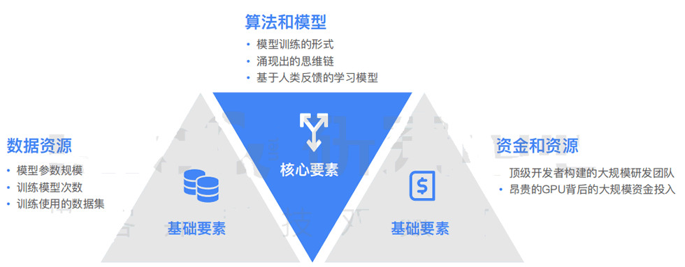 雖然數(shù)據(jù)、資金資源為大語言模型研發(fā)設(shè)置了G門檻,但對(duì)于實(shí)力雄厚的大型企業(yè)仍然是挑戰(zhàn)較小的。算法和模型是目前區(qū)分大語言模型研發(fā)能力的核心 要素。算法和模型影響的的模型豐富度、模型準(zhǔn)確性、能力涌現(xiàn)等都成為評(píng)價(jià)大語言模型優(yōu)劣的核心指標(biāo)。