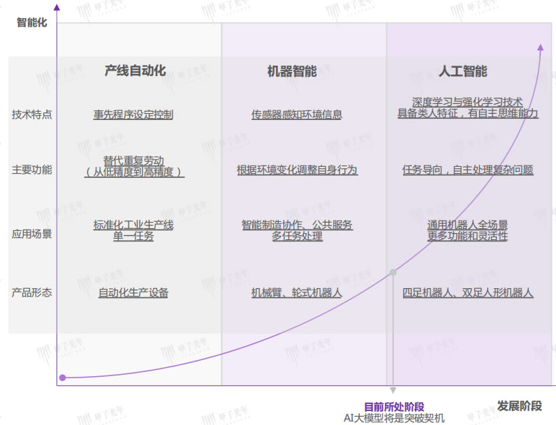 憑借機器視覺,自然語言理解等人工智能技術(shù)的發(fā)展,初代“AI+”機器人產(chǎn)品逐步成熟,生成式AI的爆發(fā)與通用人工智能的曙光