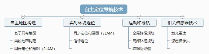 按照所實(shí)現(xiàn)的功能劃分,自主定位導(dǎo)航技術(shù)主要包含了以下內(nèi)容: