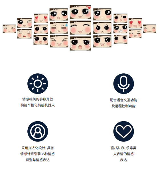 智能課堂機(jī)器人采用機(jī)器人視覺系統(tǒng),深度語音交互系統(tǒng)、先進(jìn)的語音引擎,搭載環(huán)形麥克風(fēng)陳列、運(yùn)用聲控識別、語義理解、人臉識別