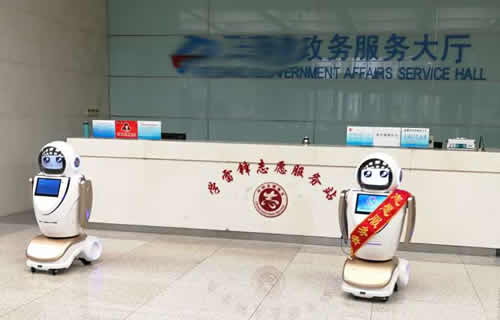 行政服務(wù)機(jī)器人已在行政服務(wù)中心大廳上崗了,化身大堂經(jīng)理歡迎您來咨詢奧。